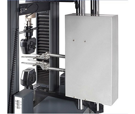Automatic extensometer is used for automatic measurement of specimen extension during tensile tests, including axial and transverse measurement. The axial part can automatically adjust gauge length, clamp and loosen specimen, measure specimen length deformation. The transverse part can automatically clamp and loosen specimen, measure specimen width deformation. Modulus of elasticity, percentage elongation at fracture, plastic strain ratio(r) and tensile strain hardening exponent (n) of sheet metal and thin strip are determined according to the measured value.